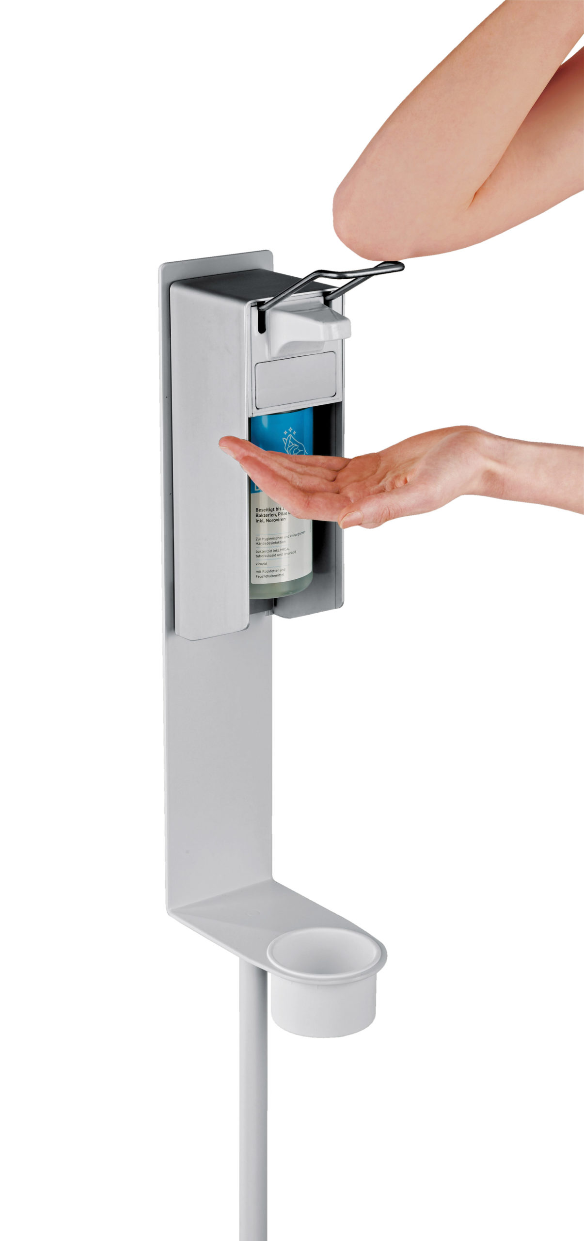 Ab sofort haben wir mobile Desinfektionsmittelständer für Eurospender mit 350ml | 500ml | 1.000 ml und für Pumpflaschen zum Verkauf